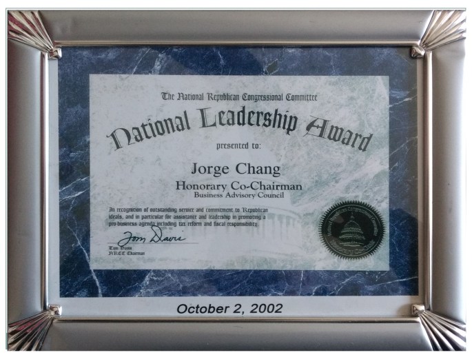 El Ing. Jorge Arturo Chang Bonilla tiene mucha experiencia para gobernar, ya que fue asesor en la Fuerza de Tarea Presidencial del Presidente George W Bush de los Estados Unidos y se dedicó desinteresadamente (sin robar), a la causa de un gobierno limitado con bajos impuestos, libertad y responsabilidad personal como cimientos del gobierno americano y puede aplicar los más altos ideales y principios del Partido Republicano de los Estados Unidos para gobernar, por lo que fue premiado.